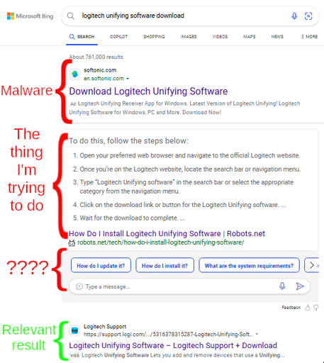I unknowingly downloaded some software from there when I was a kid, and, from what I remember, it came bundled with some sort of update manager or something. Even if it’s not outright malware, I would wager most people who are looking to download logitech’s utility don’t want some irrelevant third-party garbage on their system. So AT BEST it’s crapware / bloatware