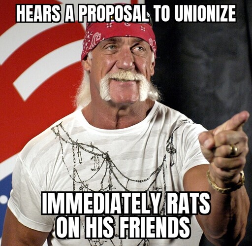 Sippy Cup@lemmy.world to Memes@lemmy.ml · 1 year agoThe hulkster won't stand for fair wages BROTHERRRRlemmy.worldimagemessage-square3linkfedilinkarrow-up11arrow-down10