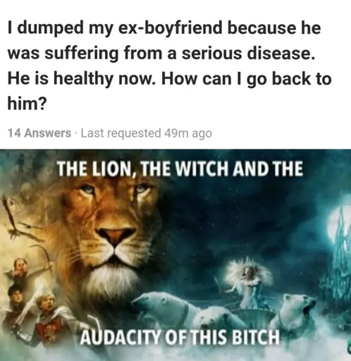 Oh fuck off. I am not being contrarian. I am just too old to believe in absolutes. Things change, people change. That’s just life. And having seen multiple people die of cancer over the years, that shit is no fucking joke and will absolutely ruin the lives of everyone involved. If someone just cannot handle that, it’s OK to leave that awful situation. Yes, it does suck even more for the person who’s actually ill. But I really don’t see a point in ruining multiple lives because of one person’s illness. Again, if people want to step up and be there, that is amazing and laudable. But if you step away simply to protect yourself, you will probably feel bad and wish you could do more. But sometimes you just can’t. Once more: that’s simply how life is.